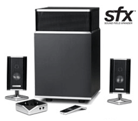 The Altec Lansing FX4021. It�s tasteful enough to sit alongside your finest electronics and small enough to fit on your desktop. And it features dual 5.25-inch drivers and an isobaric subwoofer. Isobaric? It�s a fancy technical term for two woofers in a single cabinet that are positioned to deliver deeper bass in half the usual space. Satellites feature removable bases for easy wall mounting. System includes a wireless remote.