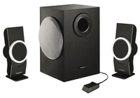 | Speaker Power: | 6 Watts RMS per channel (2 channels) 17 Watts RMS subwoofer |
