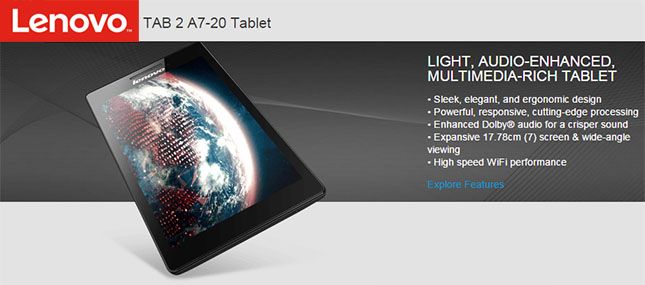 Lenovo Tab A7-20 tablet. The wide view IPS display enhances the viewing angle and