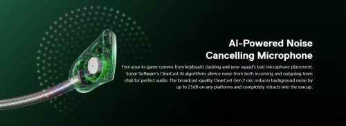 - AI-Powered noise-cancelling mic uses Sonar ClearCast AI algorithms to silence ambient sounds or teammate noise, with ChatMix Dial on-headset