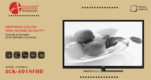 The New ACROSS 40" Class LED Backlit LED TV with stylish cosmetics, takes into consideration every feature the demanding digital customer is looking for now and for the future. It offers a 4000:1 Native Contrast Ratio, 450 cd/m2 and a 176 Degree Viewing Angle. This unit connectivity takes into consideration today’s digital world and includes an Tuner, HDMI Inputs, USB Port, PC Input and a Component Video Input. Ideal for any room in the house!