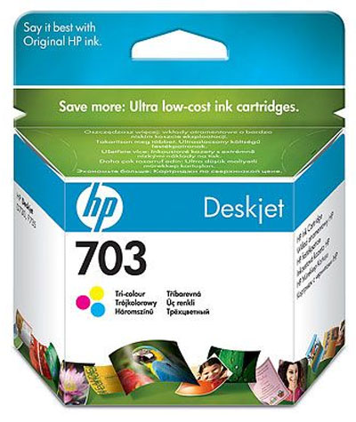 The patented, pigment-based ink in HP 703 Tri-Color Inkjet Print Cartridge ensures consistent results for a wide variety of printing. The reliable, easy-to-install cartridge and specially formulated ink deliver crisp, sharp results that resist fading. For HP DJ D730, F735 and Officejet AIO series printer.