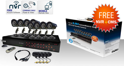 surveillance kit is suitable for home, small or medium business environment. This all-in-one surveillance kit is equipped with 8 weatherproof cameras, one 16-Ch H.264 DVR and free surveillance software which supports remote site backup, E-map, event management, motion detection, IP camera hybrid system and more. The easy set-up and multiple viewing capabilities make it an economic choice for your surveillance need.