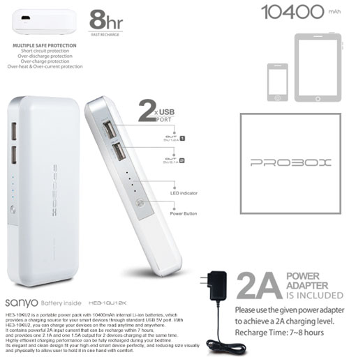 | Cables | 2 USB cables & 6 connectors (for multi devices) included |