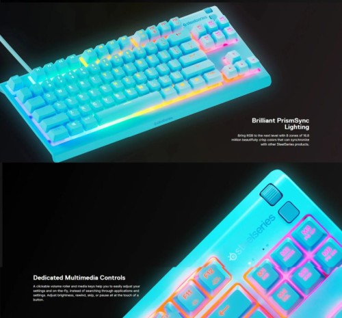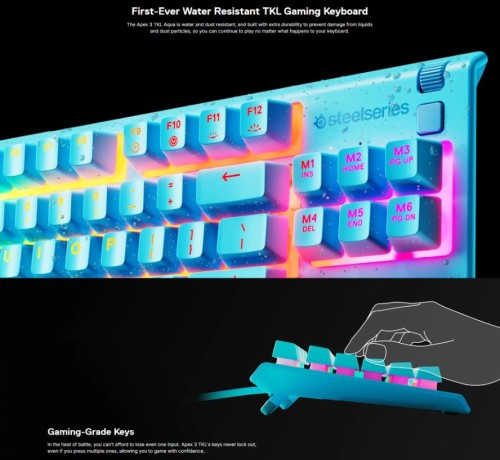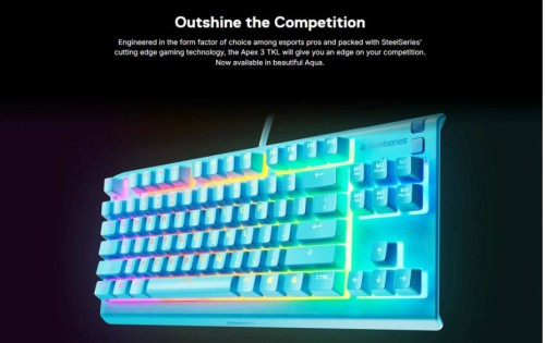 Steelseries Apex 3 TKL RGB Water & Dust Resistant Whisper Quiet Switches Gaming Keyboard Aqua (64933)